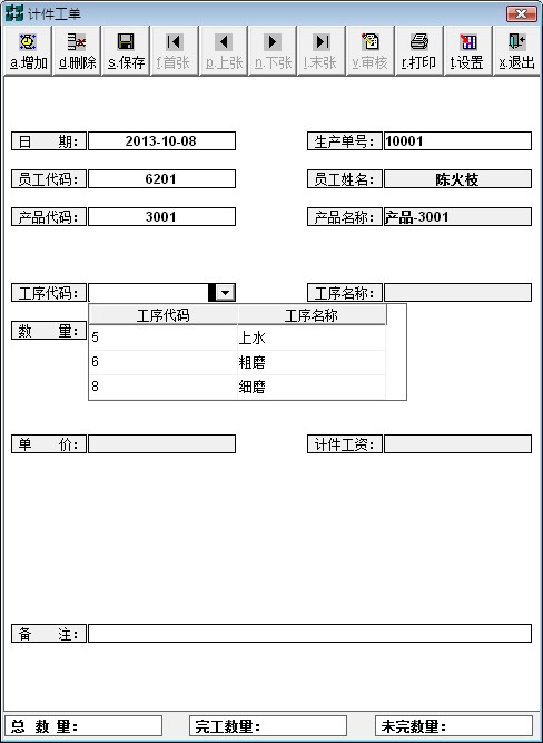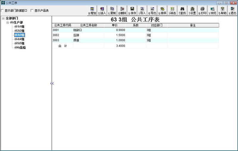 | 产量定额 | 计件工表 | 工序对应部门 |