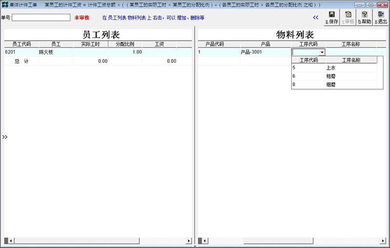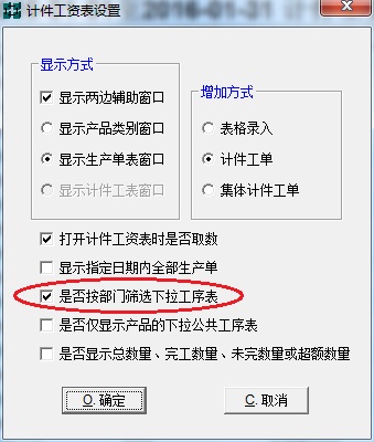 3、在计件工资表,启用 是否按部门筛选下拉工序表